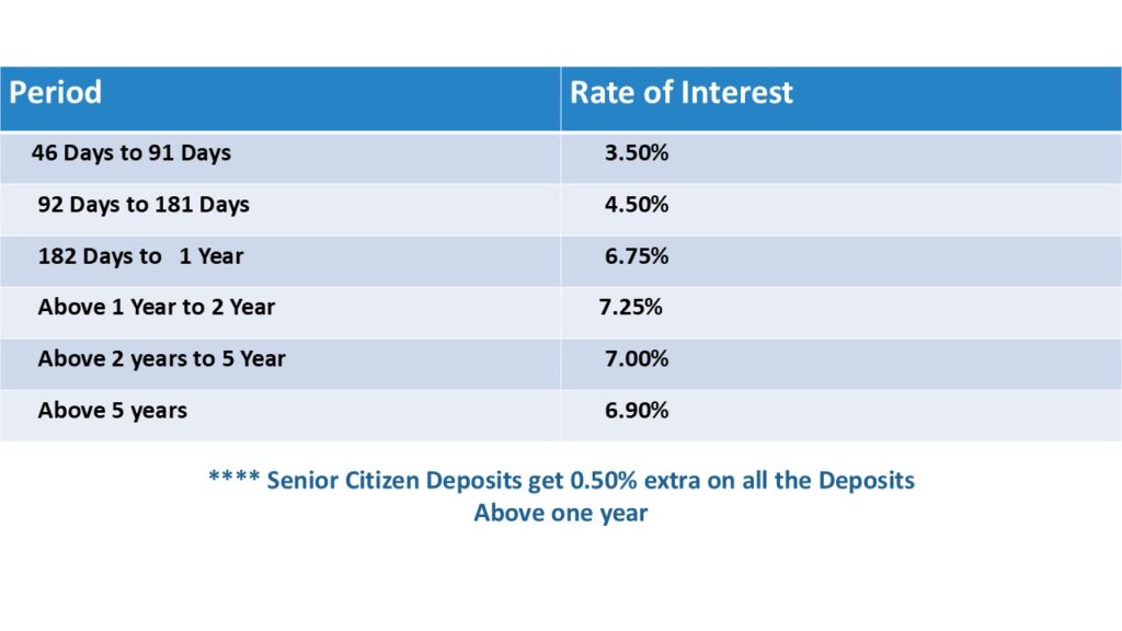 Senior citizens: 0.50% extra on deposits of above 1 year