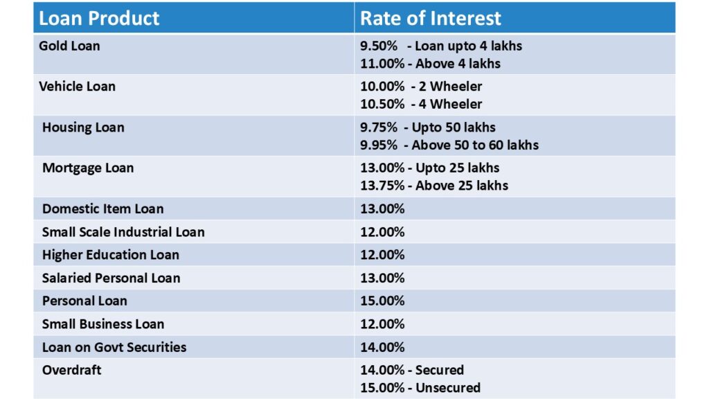 | Type of loans | Rate of interest |