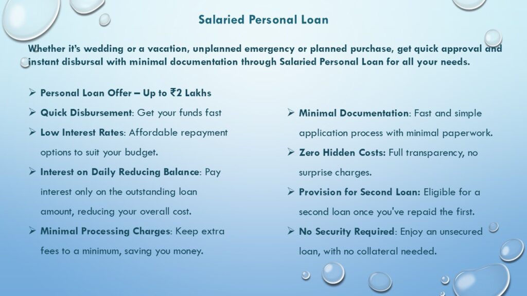 Repayment Mode In equal monthly installments with monthly interest or in equated monthly installments (though salary deduction in the case salaried persons)